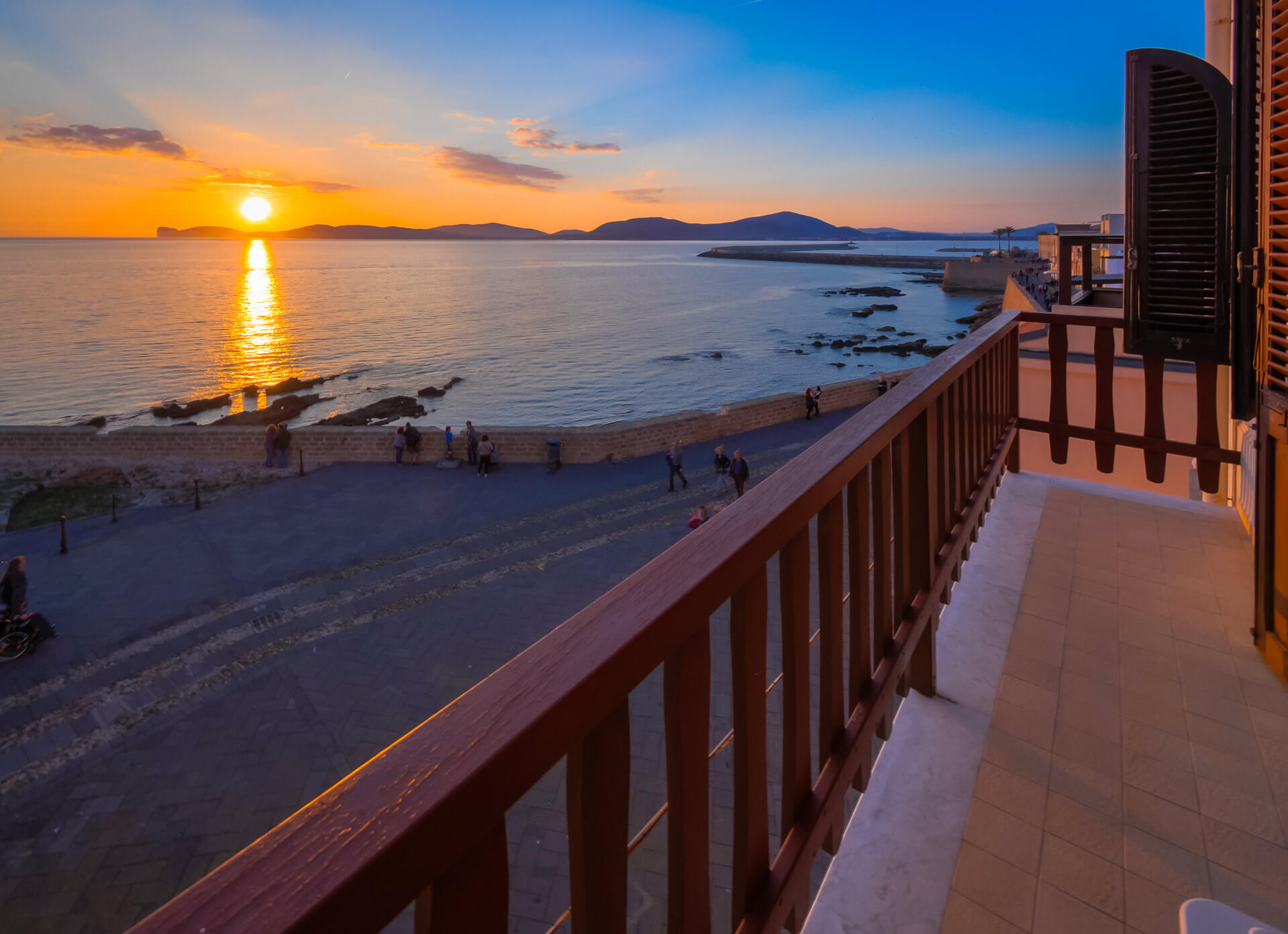 A wonderful prime place to stay in Alghero. The apartment has two balconies - one in the bedroom overlooking Via Cavour and a really special second balcony where you can sit and soak up the amazing sea views.